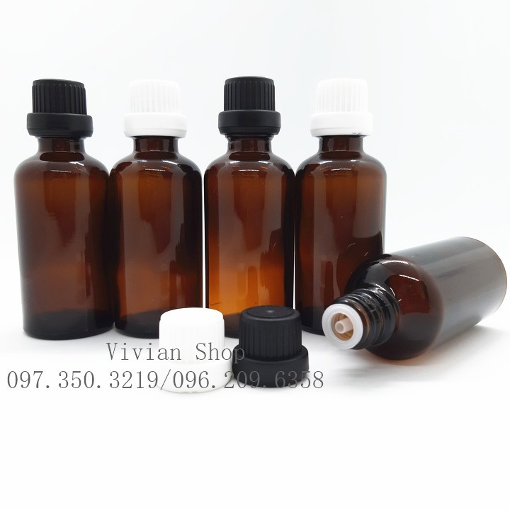 Chai lọ đựng tinh dầu 50ml, màu nâu, cổ có nút nhỏ giọt, nắp đen/ nắp trắng *** HÀNG CÓ SẴN• Xuất xứ: Trung Quốc