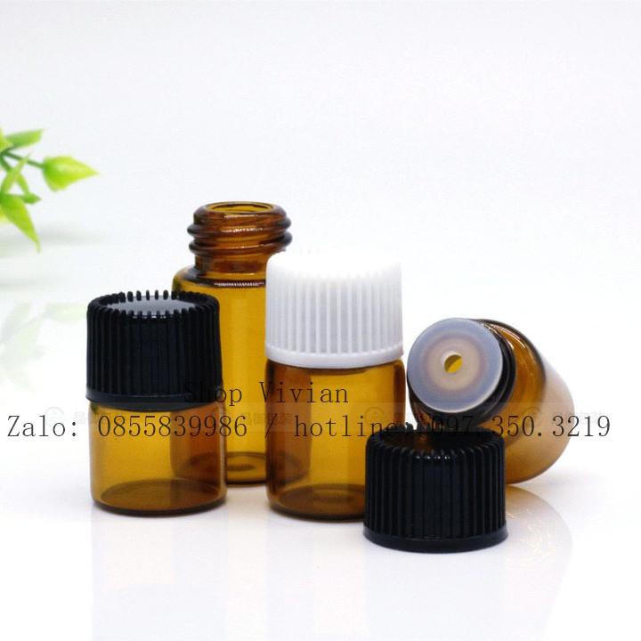 Nhà cửa & Đời sống > Chất khử mùi, làm thơm nhà > Khác || Combo 20 lọ đựng tinh dầu mẫu 01ml, 02ml, 03ml - Thủy tinh nâu, nắp nhựa PP đenCòn hàng