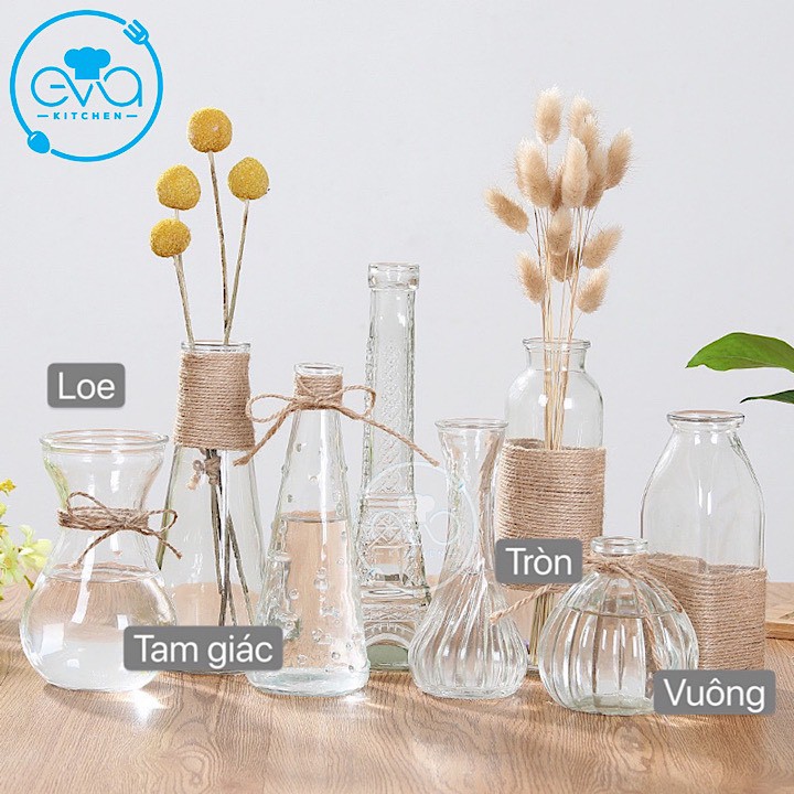 - Bình bình thủy tinh với dáng nhỏ thích hợp trông cây thủy sinh bát tiêng v.v... hoặc cắm các loại bông 1 cành trong nhà hoặc văn phòng làm việc của bạn.