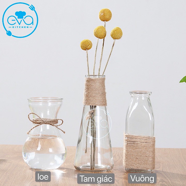 Giới thiệu Combo 3 Bình Bông Lọ Hoa Thủy Tinh Vuông Loe Tam Giác Tặng Kèm Dây Bố Trang Trí