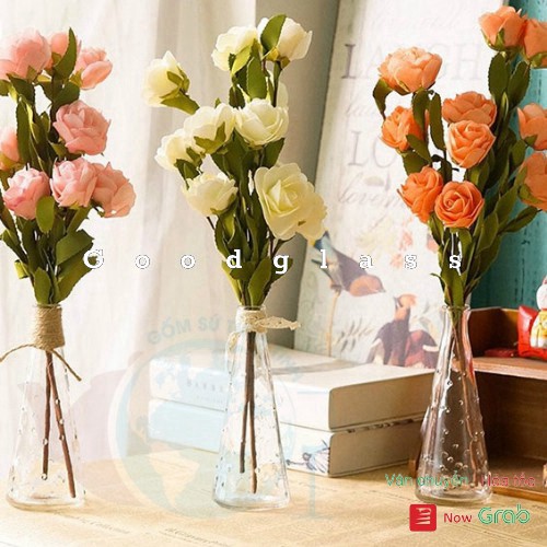 Combo 3 Bình bông lọ thủy tinh cắm hoa 1 cành hình tam giác TẶNG KÈM dây dừa trang trí