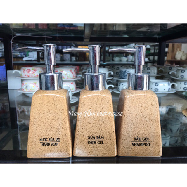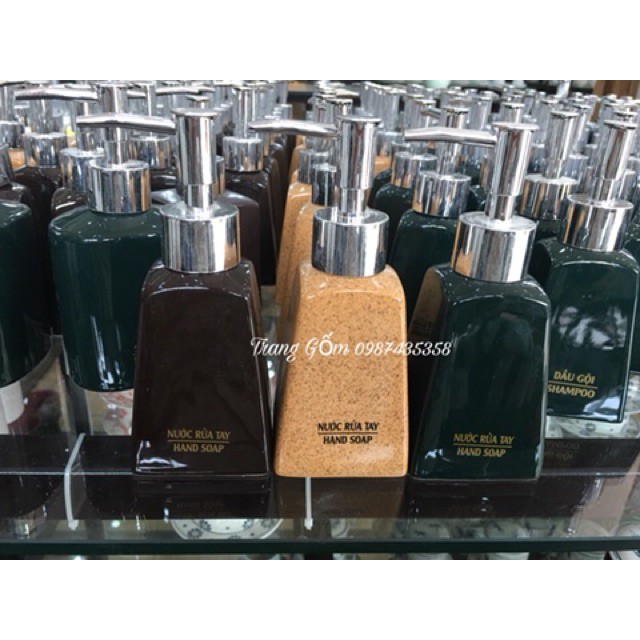 Bình đựng nước rửa tay, xà phòng, dầu gội, sữa dưỡng thể được làm từ đất cao lanh, nung ở nhiệt độ cao nên khử hoàn toàn tạp chất.