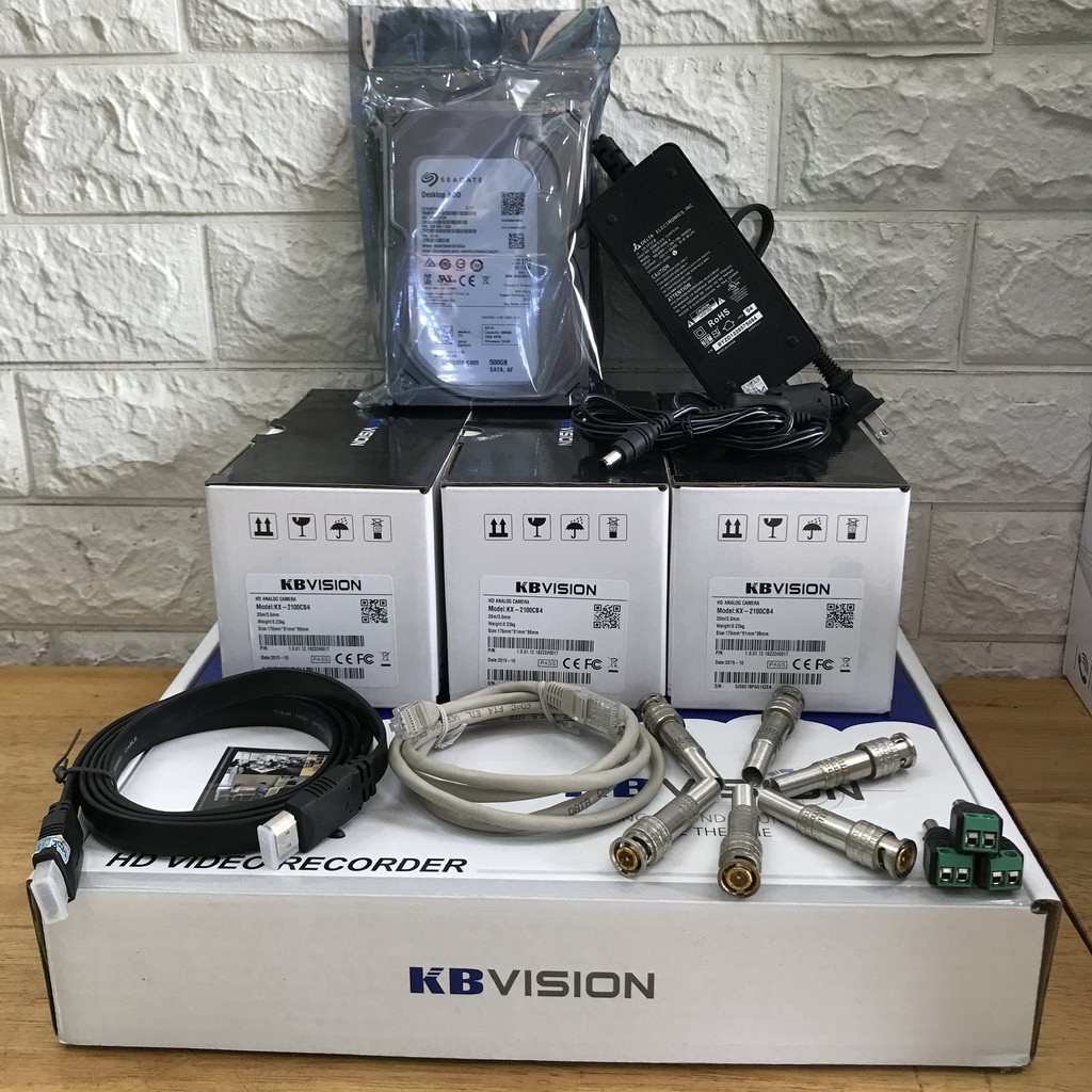 Combo 3 Camera 2.0MP FullHD + 1 Đầu ghi KBvision + HDD 500GB + Phụ kiện Chính Hãng