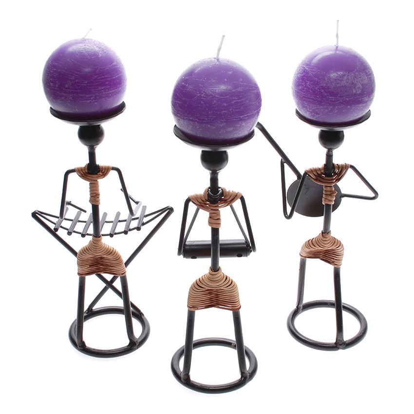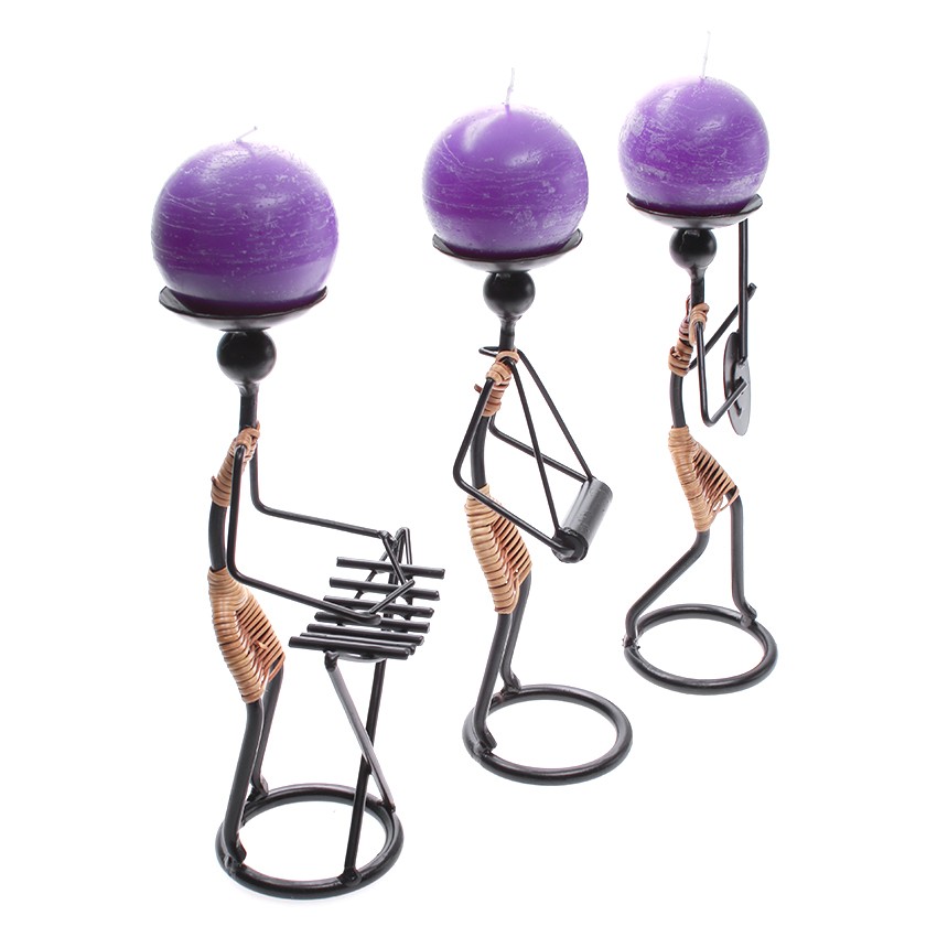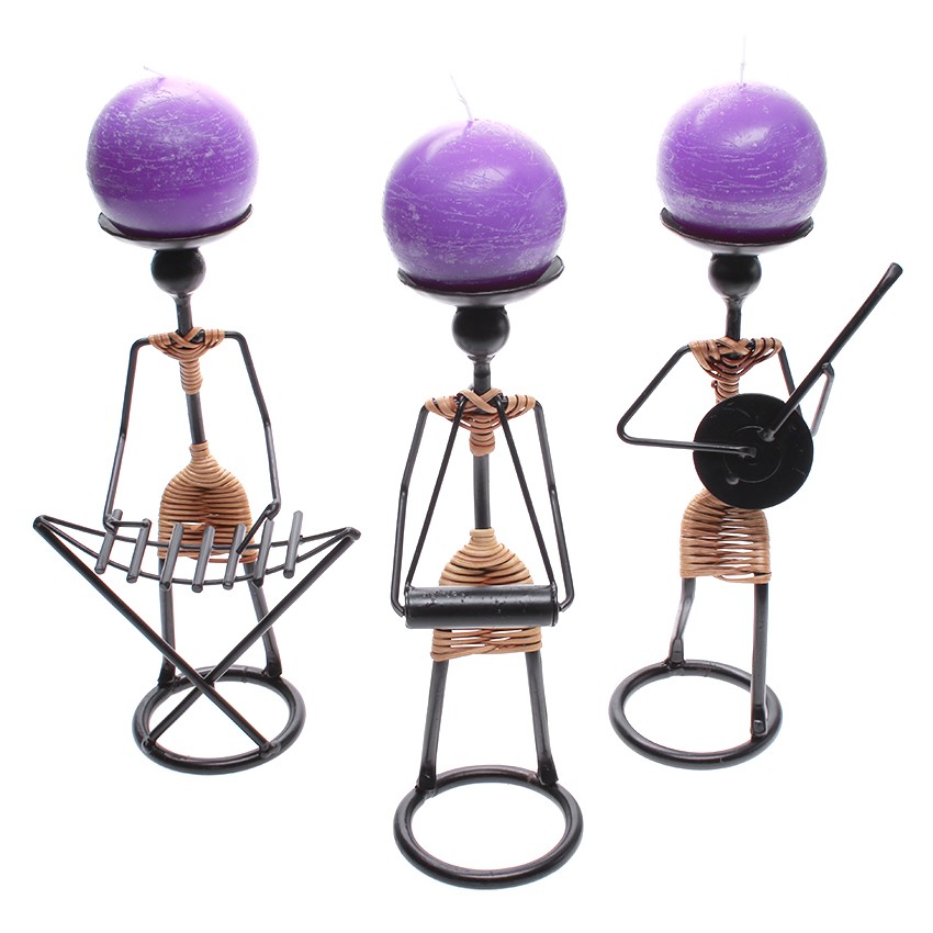 Nhà cửa & Đời sống > Trang trí nhà cửa > Nến & đồ đựng nến || Combo 3 chân đế nến mỹ thuật hình nhạc công chơi bộ đàn dân tộc Eden Candle EDC-N021 + 3 nến thơm banh tròn D7 (Tím)Còn hàng