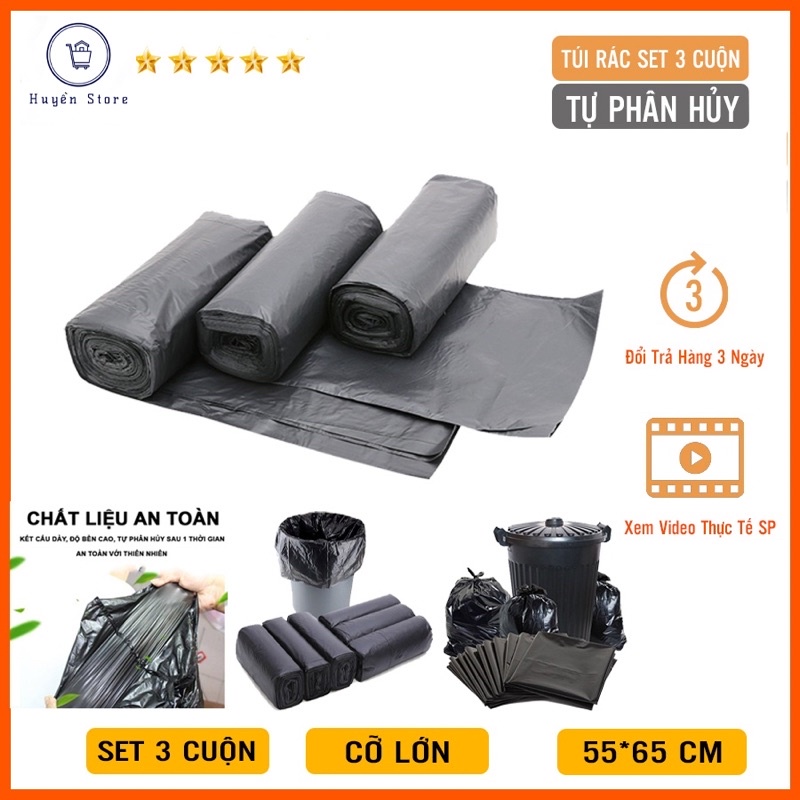 Nhà cửa & Đời sống > Dụng cụ chăm sóc nhà cửa > Túi nilon & túi rác || Combo 3 Cuộn Túi Bóng Nilon Đen Đựng Rác Gia Đình, Công Nghiệp Tự Phân Huỷ Sinh Học Tự Phân HuỷCòn hàng