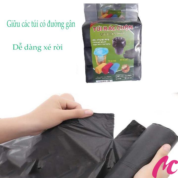 - Túi rác cuộn tự phân hủy giữa các túi có đường gân, dễ dàng xé rời.