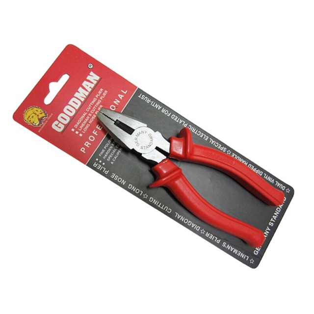 Kìm điện goodman đỏ 6 và 8 in chuyên dùng cho nghành điện, điện tử, viễn thông, xây dựng, làm đồ nhựa, làm đồ da thuộc, làm đồ thủ công, kìm điện Goodman được sử dụng chính để cắt, giữ, tuốt vỏ dây điện, dây cáp có vỏ bọc, dây cứng không vỏ bọc