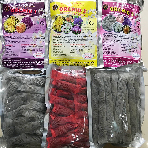 Giới thiệu COMBO 3 Túi Phân Bón Lan ORCHID 1-2-3 - Dưỡng rễ, Cây, Kích Ra Hoa cho Phong Lan, cây kiểng - tan chậm Túi Lưới