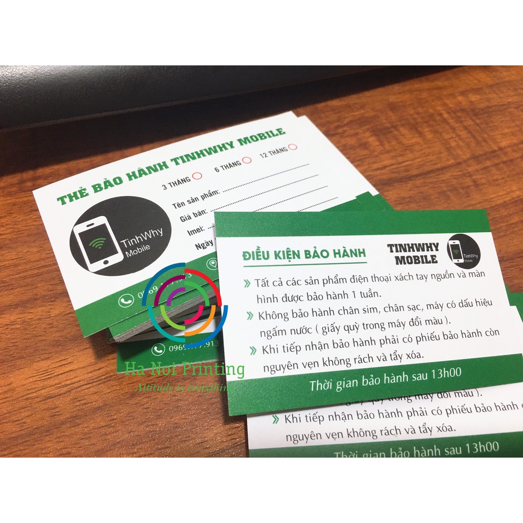 Combo 300 chiếc thẻ bảo hành cho shop điện thoại
