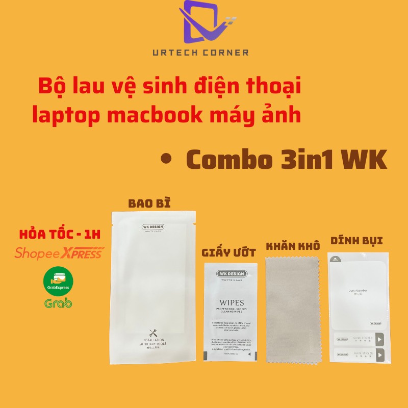 ✅ GIỚI THIỆU SẢN PHẨM: Combo 3in1 khăn lau đa năng WK Urtechcorner lau màn hình điện thoại, máy tính, lau kính mắt.- Lau màn hình điện thoại, hỗ trợ dán kính cường lực.