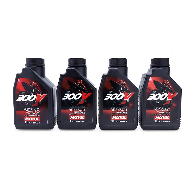 Giới thiệu sản phẩm Combo 4 bình nhớt cao cấp cho xe mô tô phân khối lớn Motul 300V Factory Line 10W40300V Factory Line 10W40 1L - Sản phẩm dầu nhớt Motul chất lượng cao, bôi trơn động cơ mạnh mẽ dành cho các dòng xe moto phân khối lớn.