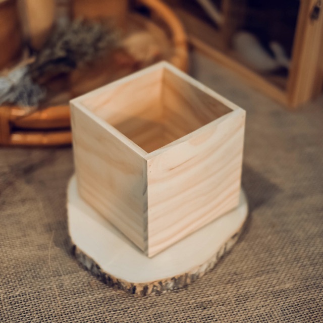 Bộ 4 chậu gỗ vuông để bàn- Được làm từ gỗ thông nhập có vân gỗ tự nhiên mộc mạc xinh xắn