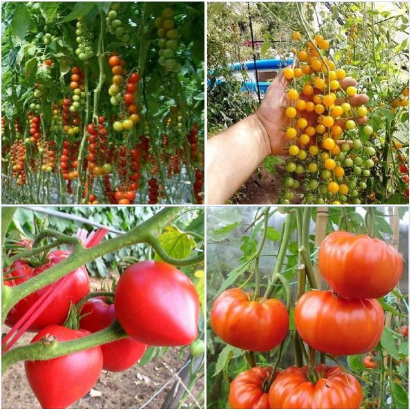 Combo 4 gói cà chua ( cà chua bi dây vàng + đỏ + cà chua khổng lồ + cà chua trái tim )