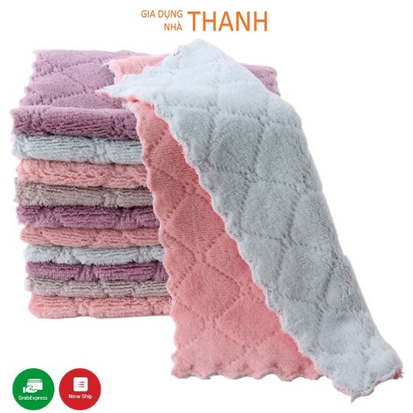 - Khăn lau đa năng 2 mặt thấm hút nước tốt so với các loại khăn khác do 2 mặt khăn thiết kế các sợi bông nhung dày dặn.