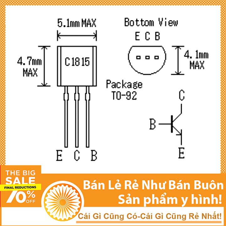 Nhà cửa & Đời sống > Dụng cụ & Thiết bị tiện ích > Dụng cụ > Khác || Combo 4 Linh Kiện Transistor C1815 TO-92 50V 0.15A NPNCòn hàng