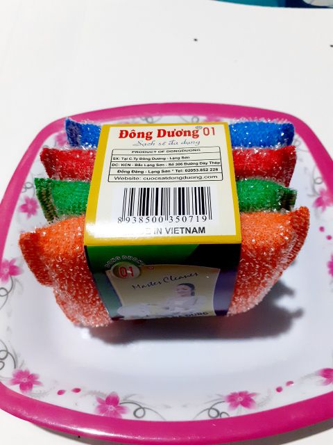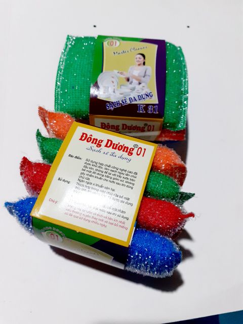 Combo 4 miếng rửa chén Đông DươngThành phần: sợi nilon,sợi dún, mút xốp
