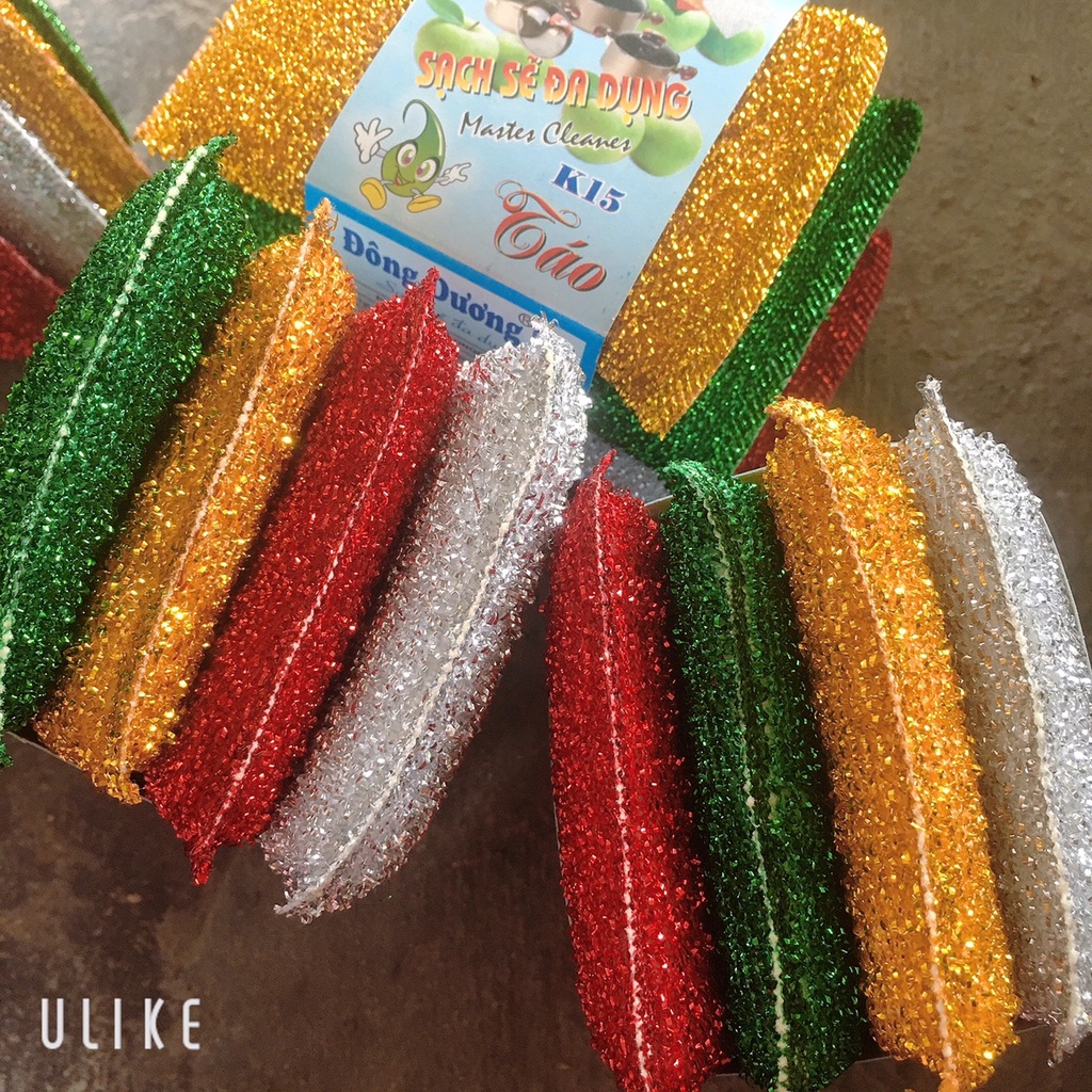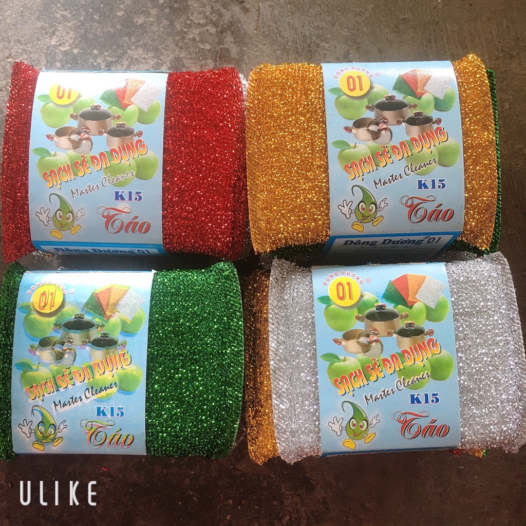 Combo 4 Miếng Rửa Chén Siêu Sạch, Đánh Bay Vết Bẩn- Thành phần: Sợi nilong, sợi dún, mút xốp.