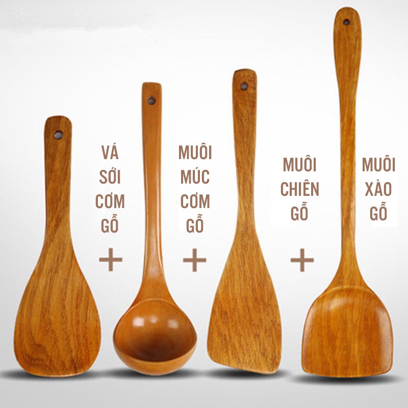BỘ MUÔI VÁ NẤU ĂN CAO CẤP 4 MÓN CHẤT LIỆU GỖ CAO CẤPBộ sản phẩm gồm: