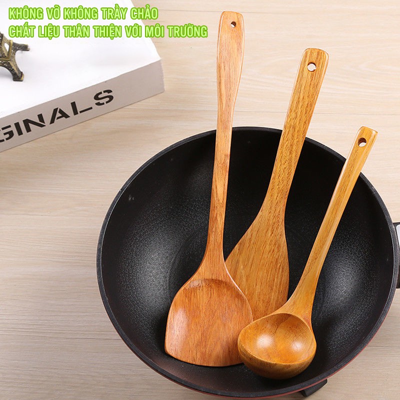 Combo 4 Món Muôi Xẻng Nấu Ăn Gỗ Tự Nhiên Chịu Đươc Nhiệt Độ Cao