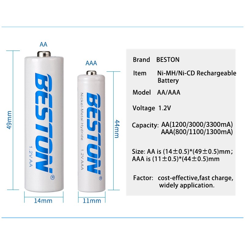 Cameras & Flycam > Phụ kiện máy ảnh > Bộ sạc pin || Combo 4 pin sạc AA Beston 3000mah/2800mah - kèm hộp nhựa đựng pin (Trắng)Còn hàng
