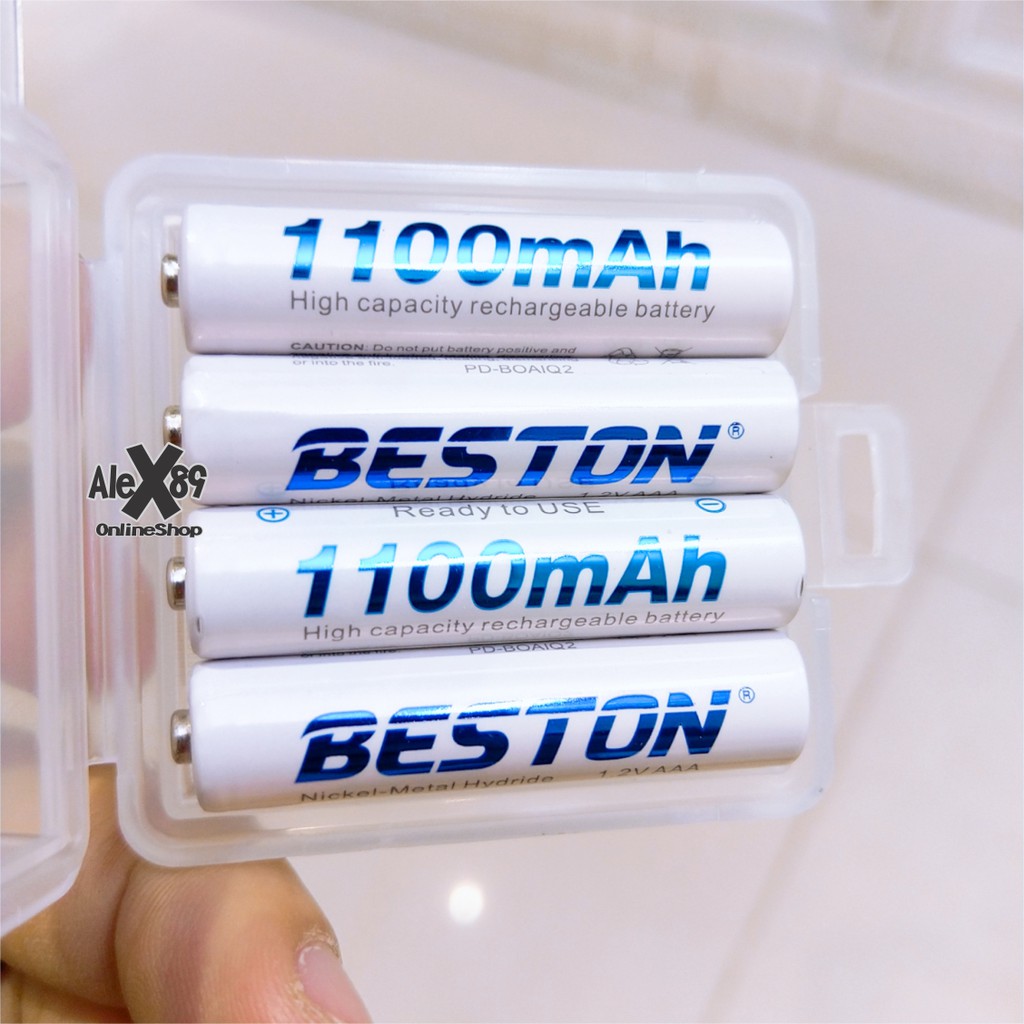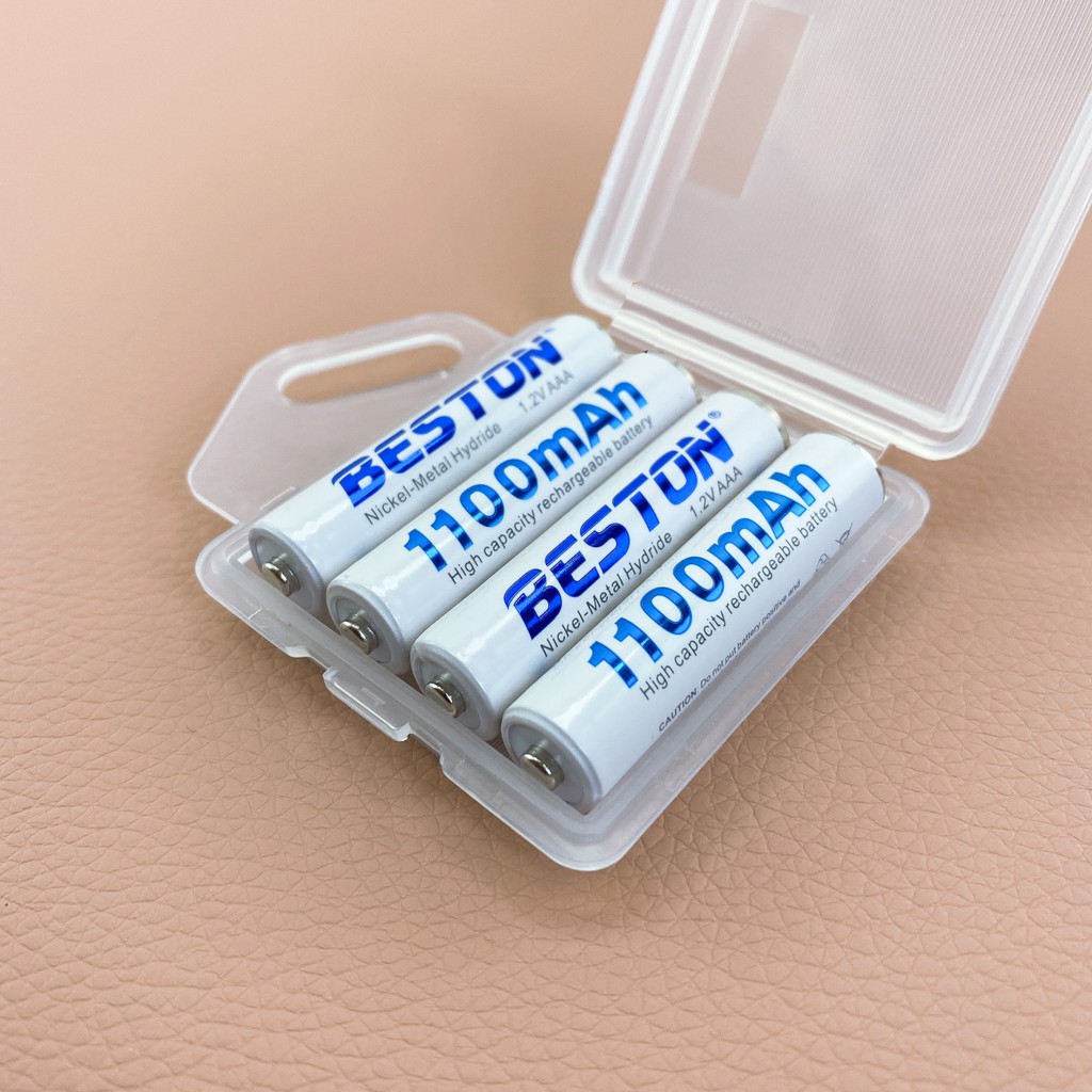 Combo 4 pin sạc AAA Beston 1100mah / 1300mah - kèm hộp nhựa đựng pin (Trắng)