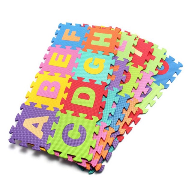 Thảm xốp lót sàn Việt Nam hình chữ cái A-Z gồm 26 miếng tương ứng với 26 chữ cái từ A-Z, kích thước mỗi miếng là 30cm x 30cm chất liệu cao su xốp với các đường viền dễ dàng nối liền với nhau tạo thành một không gian rộng cho bé vui chơi thoải mái. Với sản phẩm này, bé sẽ tự mình nhận biết được màu sắc và cách sắp xếp thứ tự chữ cái rất hay và mang tính giáo dục cao.Giá USDKG