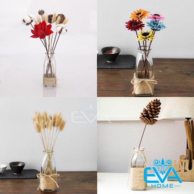 - Bình bông lọ hoa thủy tinh thường được dùng cho các loại cây có chiều cao ngắn, thân không quá to, không phân nhánh nhiều. Ngoài ra, còn có thể dùng để cắm hoa tươi để bàn, hoa Tulip cũng là một lựa chọn. Với hình dáng đơn giản, thì việc trang trí cho bình hoa thủy tinh sẽ khiến cho nó trông hấp dẫn hơn. Bạn có thể thắt thêm nơ vải, đính thêm các loại cây trang trí khác hoặc bạn có thể làm lọ gấp sao, gấp hạc, bỏ điều ước đều được.