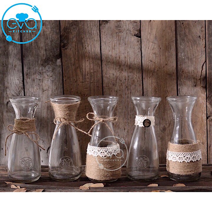 Giới thiệu Combo 5 Bình Bông Lọ Hoa Thủy Tinh Eo Nhỏ Tặng Kèm Dây Bố Trang Trí
