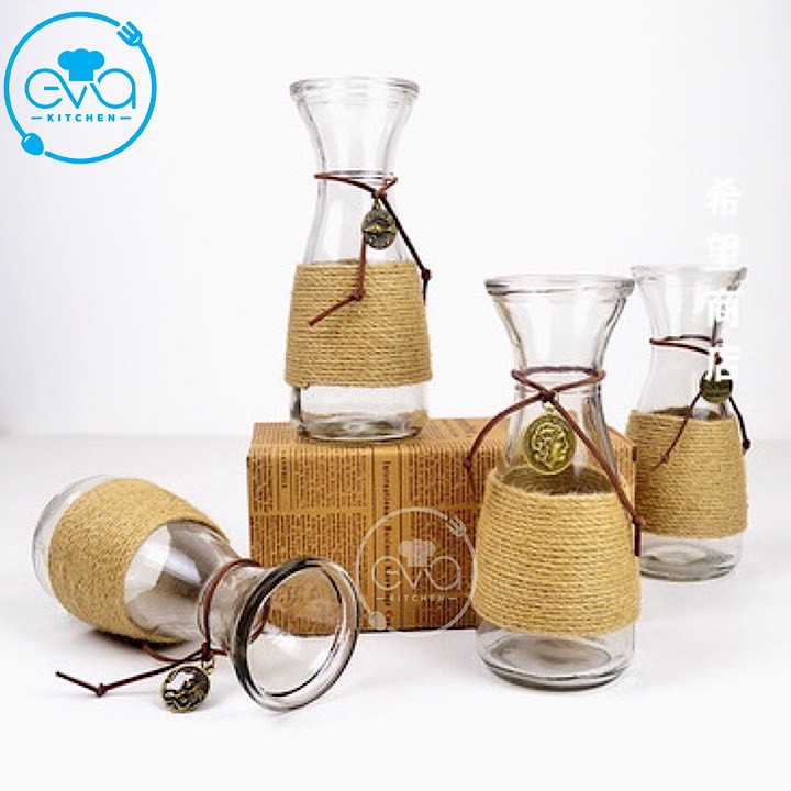 - Bộ sản phẩm gồm : 5 bình lọ hoa thuỷ tinh eo nhỏ , 5 Mét Dây bố trang trí