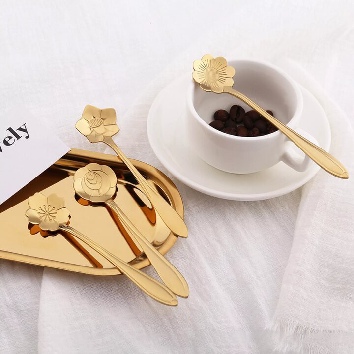 Combo 5 cái Muỗng nhỏ uống trà, cafe, ăn bánh, muỗng hình hoa cao cấp sang trọng MD6