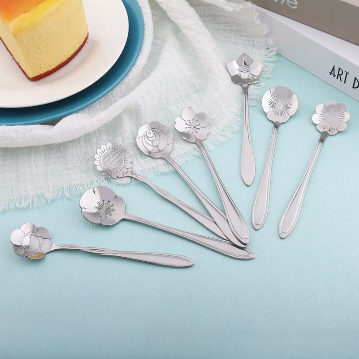 Combo 5 cái Muỗng nhỏ uống trà, cafe, ăn bánh,... muỗng hình hoa cao cấp sang trọng MD6Chất liệu: Thép không gỉ.