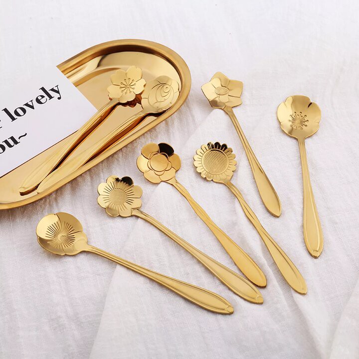 Nhà cửa & Đời sống > Bộ đồ bàn ăn > Bộ dao kéo || Combo 5 cái Muỗng nhỏ uống trà, cafe, ăn bánh, muỗng hình hoa cao cấp sang trọng MD6Còn hàng
