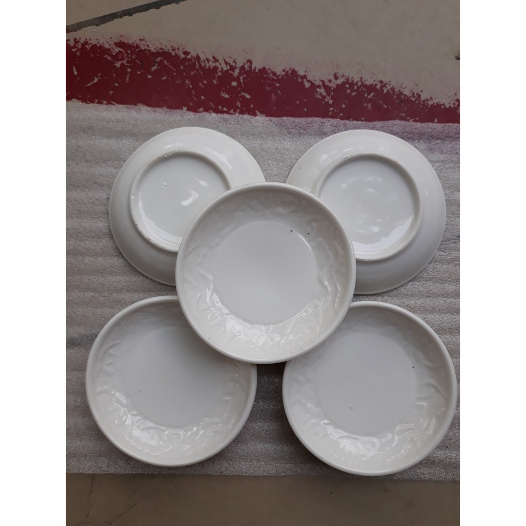 combo 5 cái chén dùng đựng nước chấm, tương ớt, tương càsứ chạm khắc nổi cực đẹp của công ty Donghwa Hàn Quốc, sx tại nhà máy ở Bình Dương. đơn giản mà đẹp.