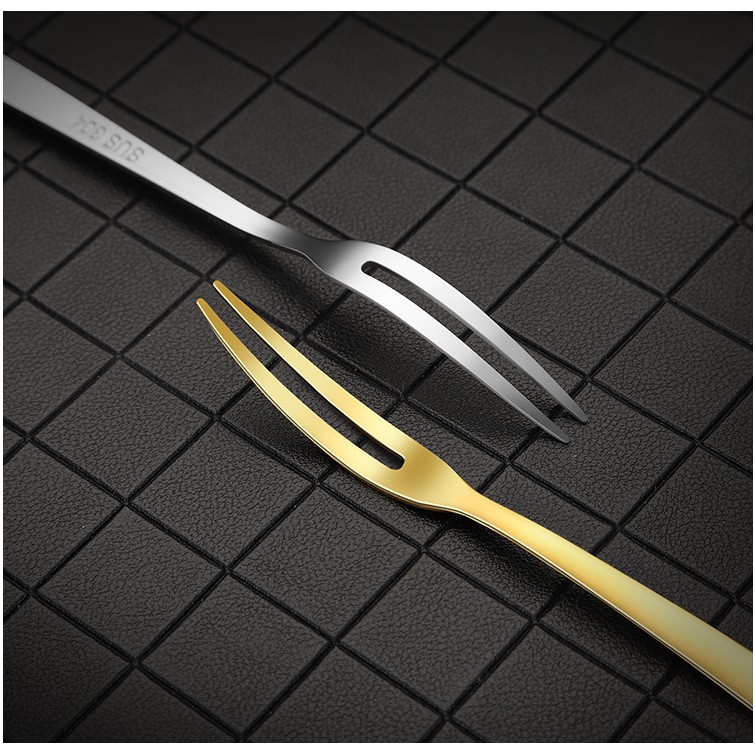 Combo 5 chiếc NĨA(DĨA)dùng ăn trái cây,bánh mứt rất xịn sò chất liệu thép không rỉ loại inox 18/10(304) (CAM KẾT ĐÚNG INOX 304) màu vàng phong cách hoàng gia rất sang trọng,hoặc màu bạc thanh lịch thượng lưu** Kích cỡ 13 x 1 cm