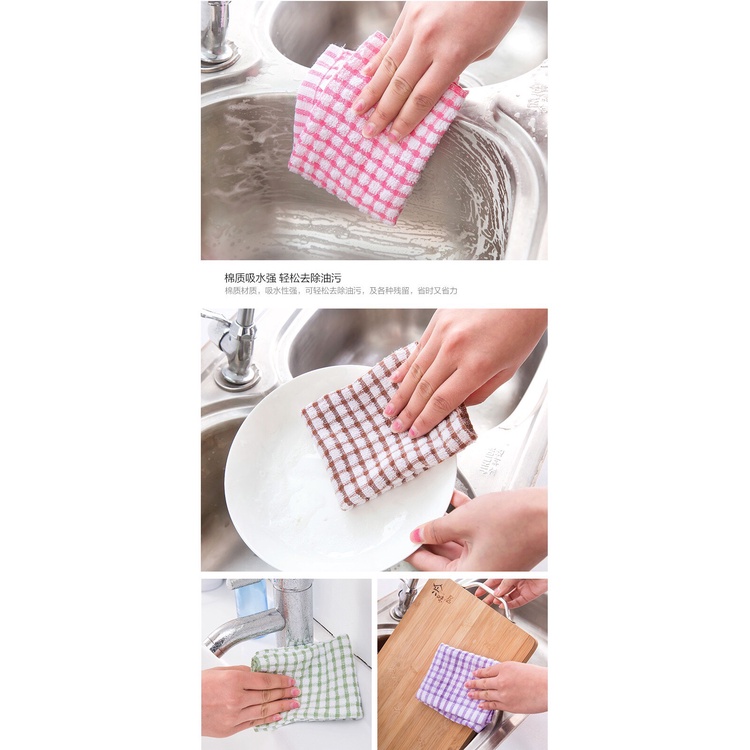 Combo 5 Khăn lau nhà bếp đa năng họa tiết caro màu lạ mắt
