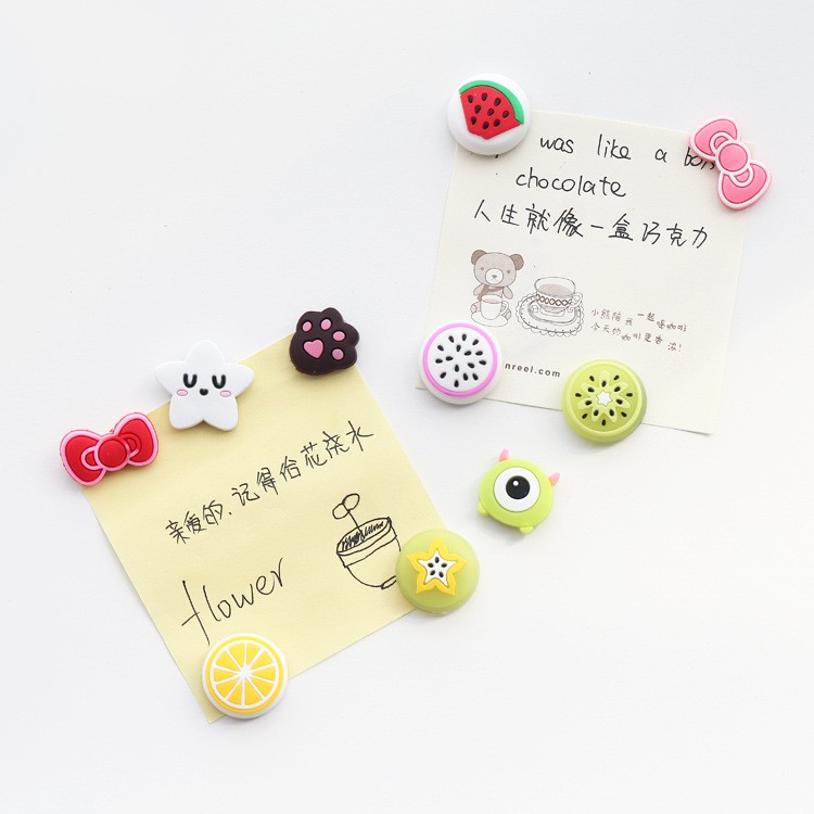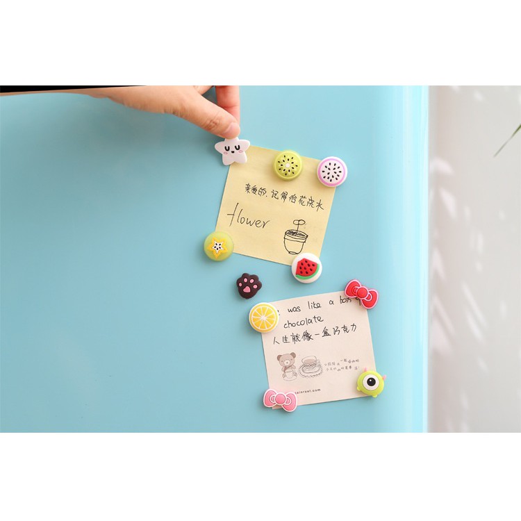 - Miếng dán tủ lạnh nhiều hình ngộ nghĩnh (5 miếng) nhiều màu sắc giúp bạn trang trí không gian nhà bạn thêm sống động.- Chất liệu bằng nhựa dẻo, có gắn nam châm để dán lên cánh tủ lạnh, các bề mặt có sắt.