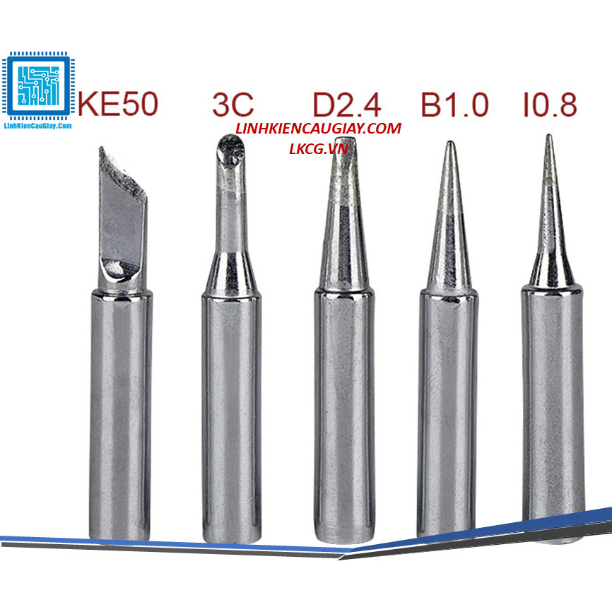 Combo 5 mũi hàn 936, 937, 908DCombo Bộ Mũi Hàn Cho Máy Hàn Hakko 936 và 937 (Gồm 1 Đầu Mũi Hàn Nhọn 900M-T-I, 1 Đầu Mũi Hàn 900M-T-2.4D, 1 Đầu Mũi Hàn 900M-T-IS, 1 Đầu Mũi Hàn Dao 900M-T-K)