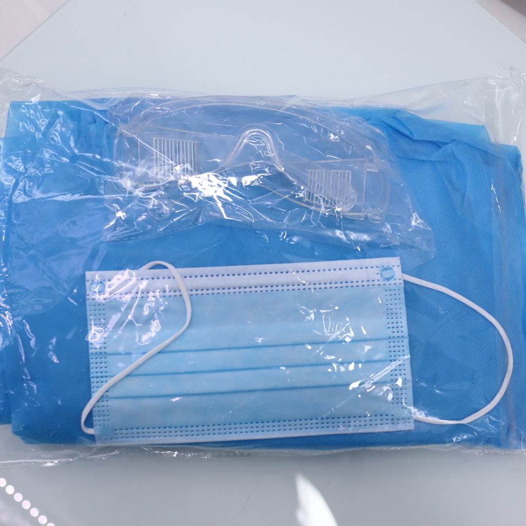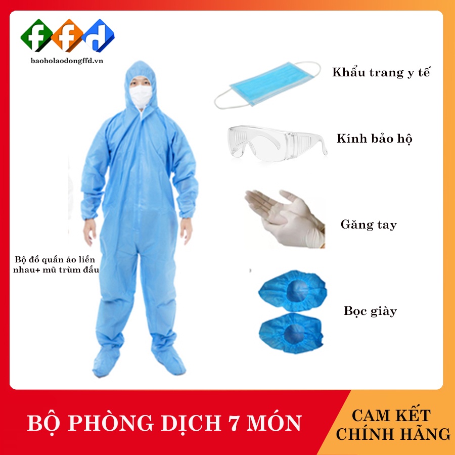 -Áo bảo hộ-Quần bảo hộ-Mũ chùm bảo hộ-Kính bảo hộ-Giày chùm bảo hộ-Găng tay cao su bảo hộ-Khẩu trang y tế 3 lớp