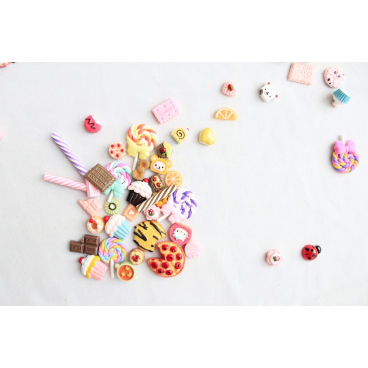 Combo 50 charm Mario, McDonald, trái cây, bánh Kitty cho các bạn trang trí Jibbitz, vỏ ốp điện thoại, DIY