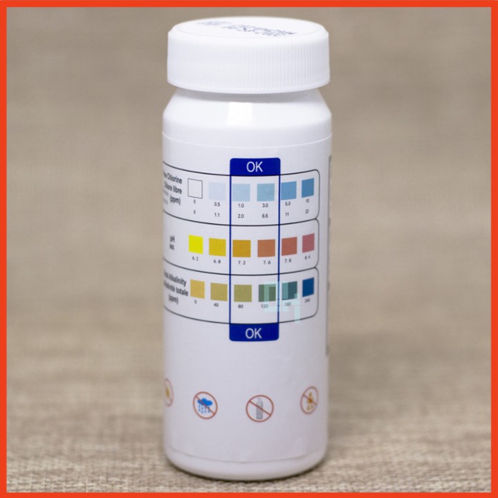 Giấy kiểm tra nước bể bơi, spa.... 3 trong 1 dùng để kiểm tra clo tự do, PH và tổng độ kiềm.