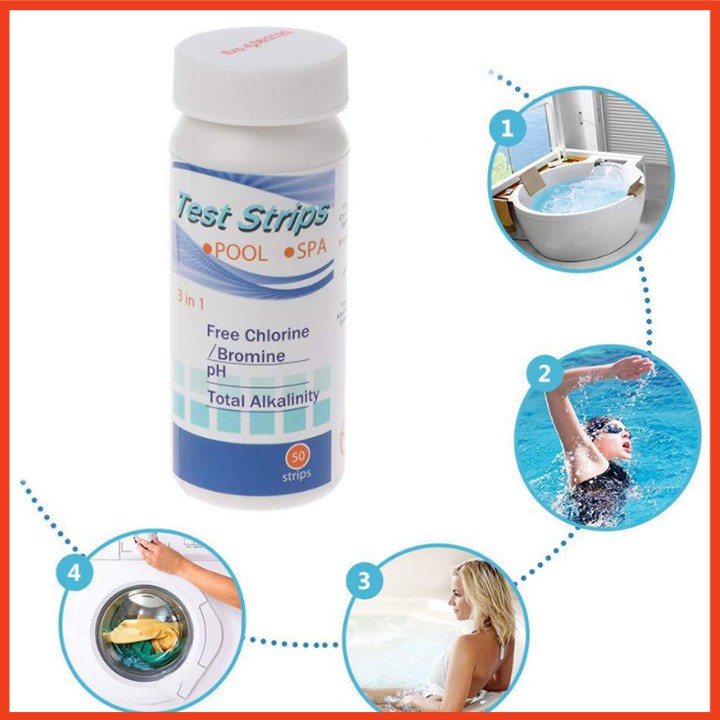 Nhà cửa & Đời sống > Dụng cụ & Thiết bị tiện ích > Dụng cụ > Dụng cụ đo lường || Combo 50 giấy thử ph 3 trong 1, thử clo, tổng độ kiềm chính xácCòn hàng