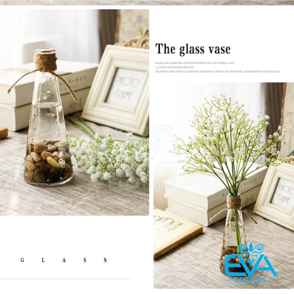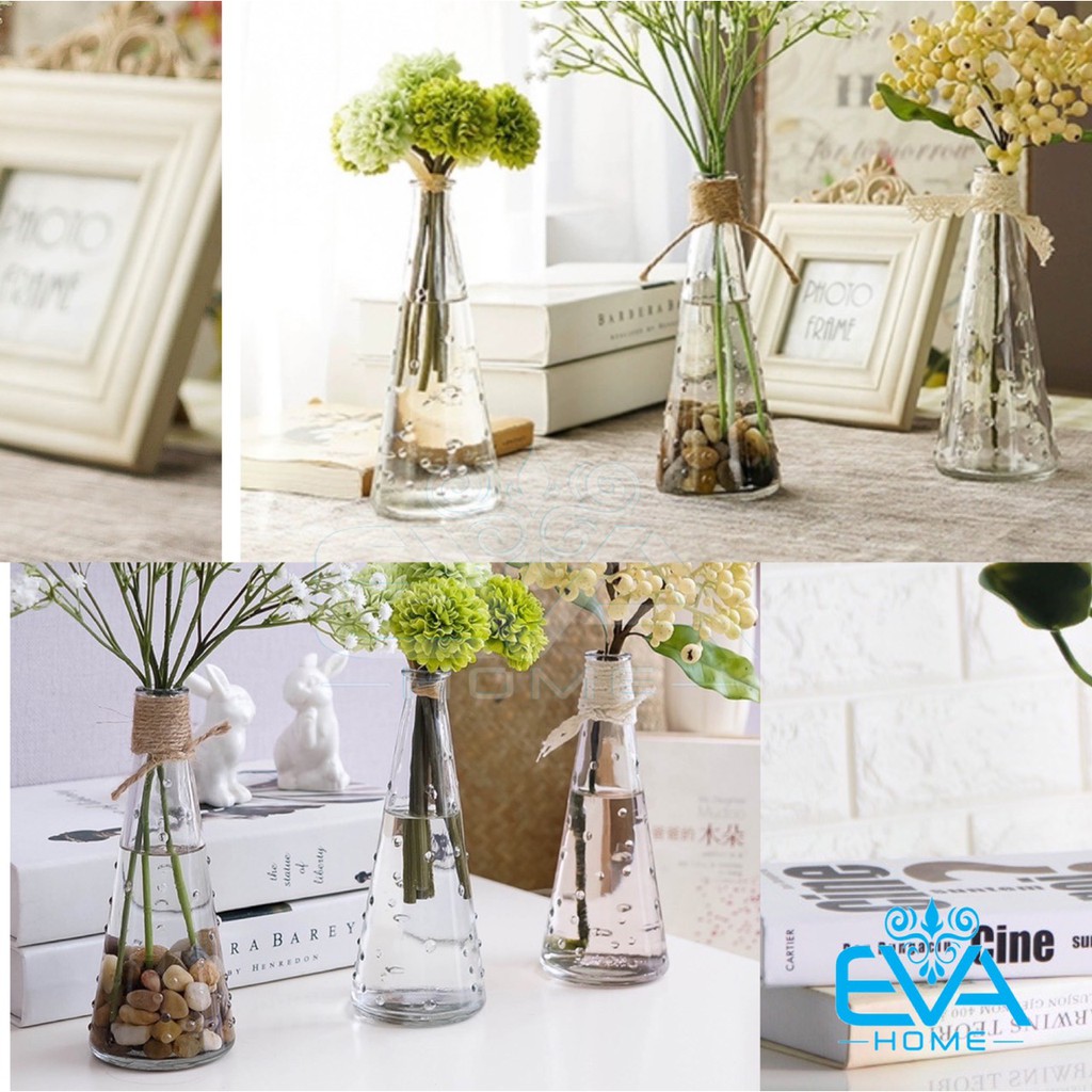 Giới thiệu Combo 6 Bình Bông Lọ Hoa Thủy Tinh Tam Giác Chấm Bi Nổi 1 Cành Tặng Kèm Dây Bố Trang Trí