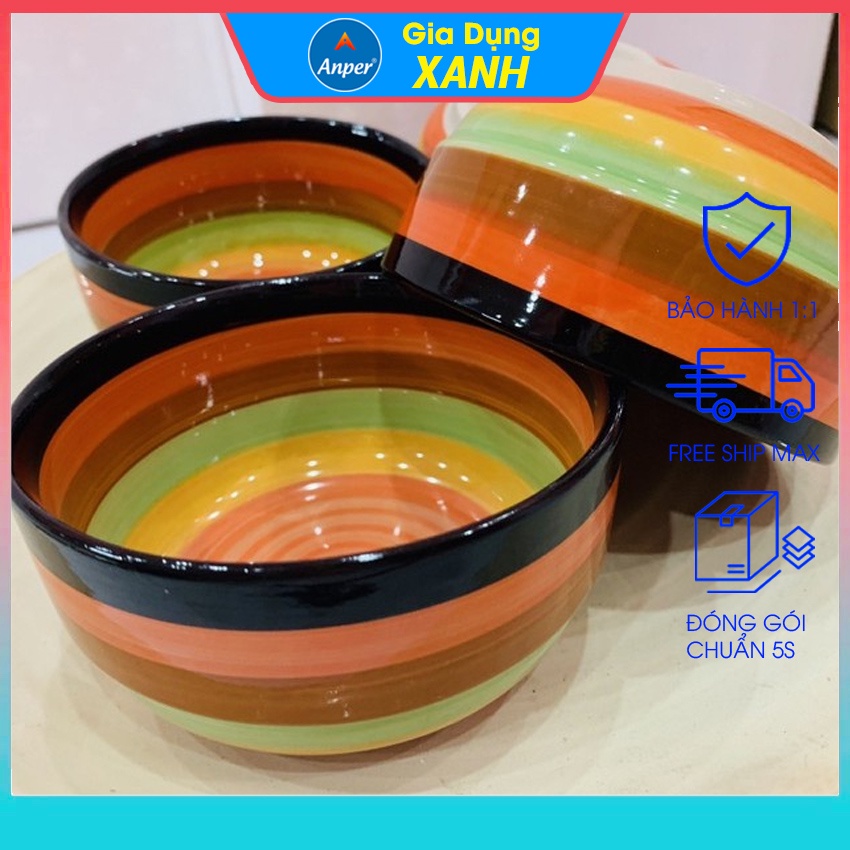 Nhà cửa & Đời sống > Bộ đồ bàn ăn > Tô || Combo 6 chén ăn cơm 3 bát ăn cơm sứ ngấn 11.5 Cm sứ cầu vồng Anper hiện đại an toàn sang trọngCòn hàng