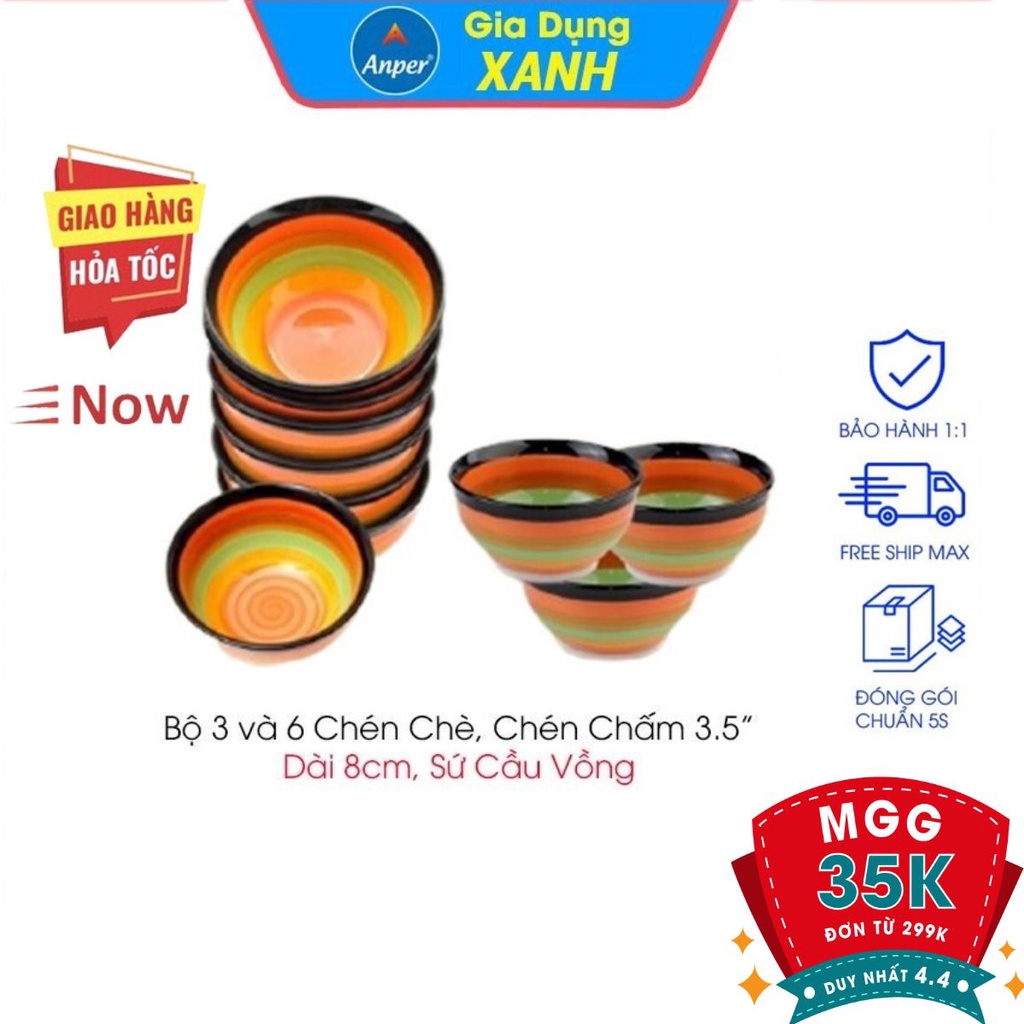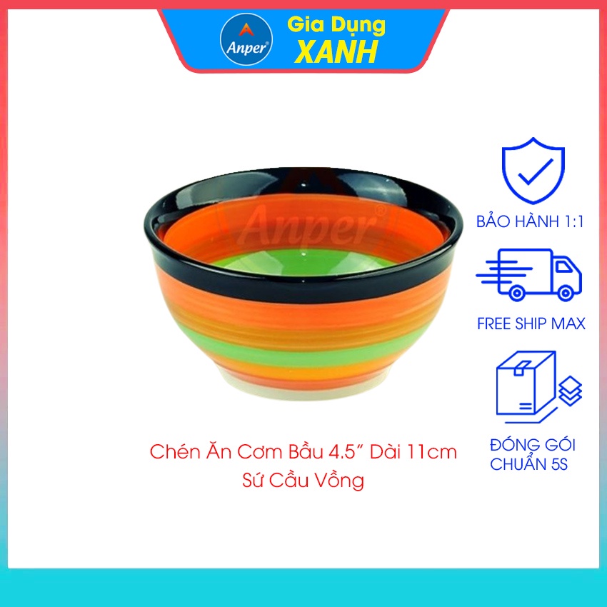 Combo 6 chén ăn cơm 3 bát ăn cơm sứ ngấn 11.5 Cm sứ cầu vồng Anper hiện đại an toàn sang trọng