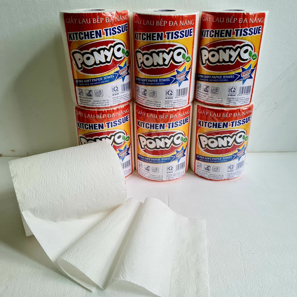 Nhà cửa & Đời sống > Dụng cụ chăm sóc nhà cửa > Khăn vệ sinh || Combo (6 cuộn) giấy lau bếp đa năng trụ đứng PONYO 500g/cuộn - 2 lớpCòn hàng