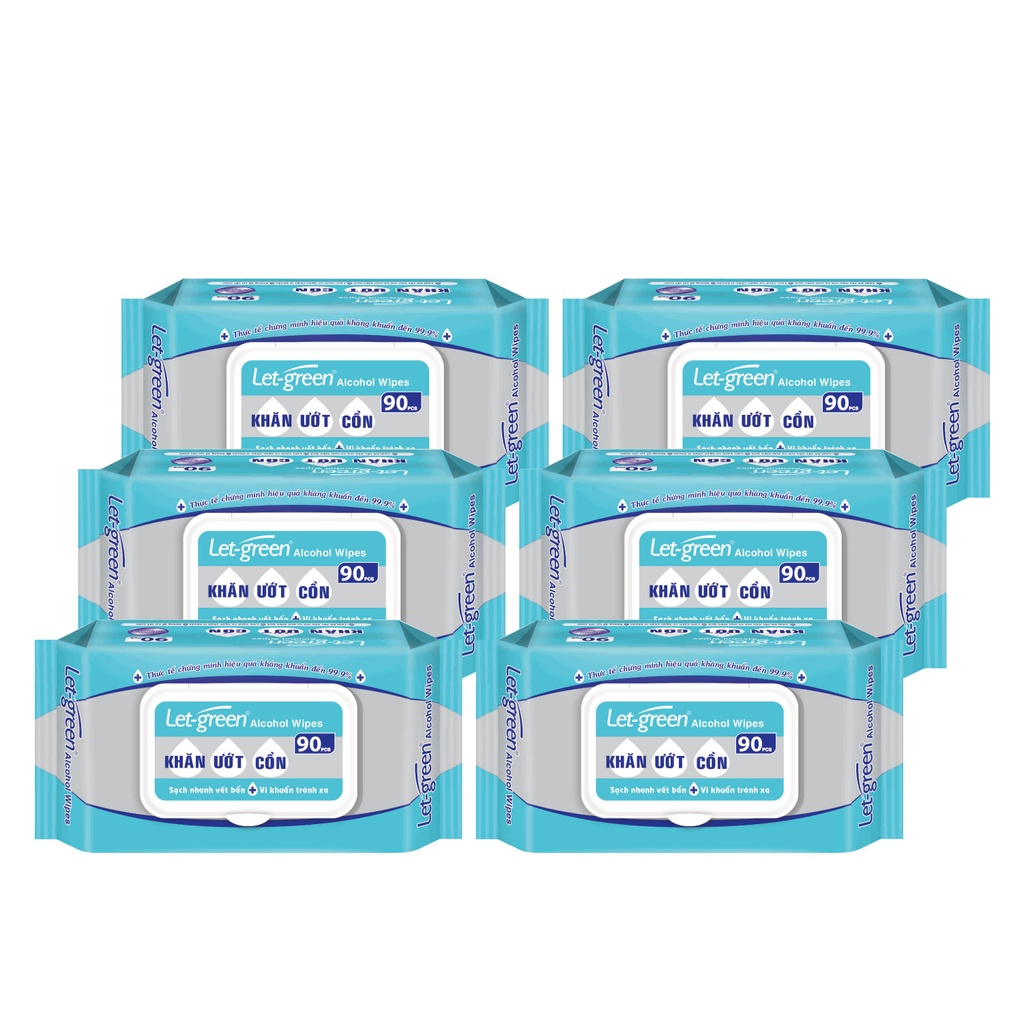 Combo 6 Gói Khăn Ướt Cồn Let-green 90 Miếng/Gói