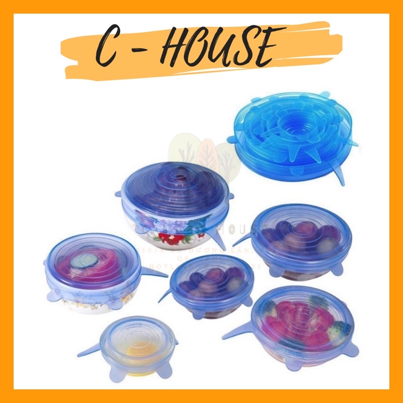 Combo 6 nắp silicone đậy thức ăn thực phẩm tránh bụi, ruồi muỗi kiến gián, tránh mùi hôi khi bỏ vào tủ lạnh