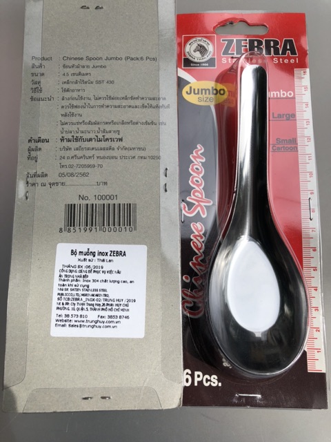 Combo 6 thìa ZEBRA inox 304 Thái lan