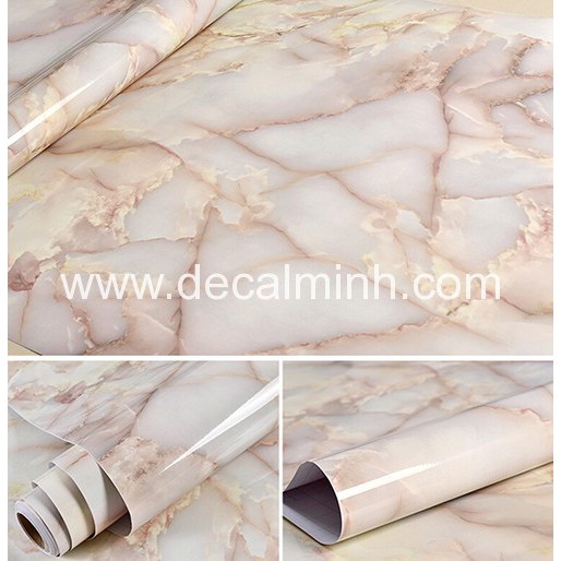 Combo 6m / 8m / 10m Decal Vân Đá Cẩm Thach Kem Hồng ( Chống Nước - Dầu Mỡ - Dễ Vệ Sinh )