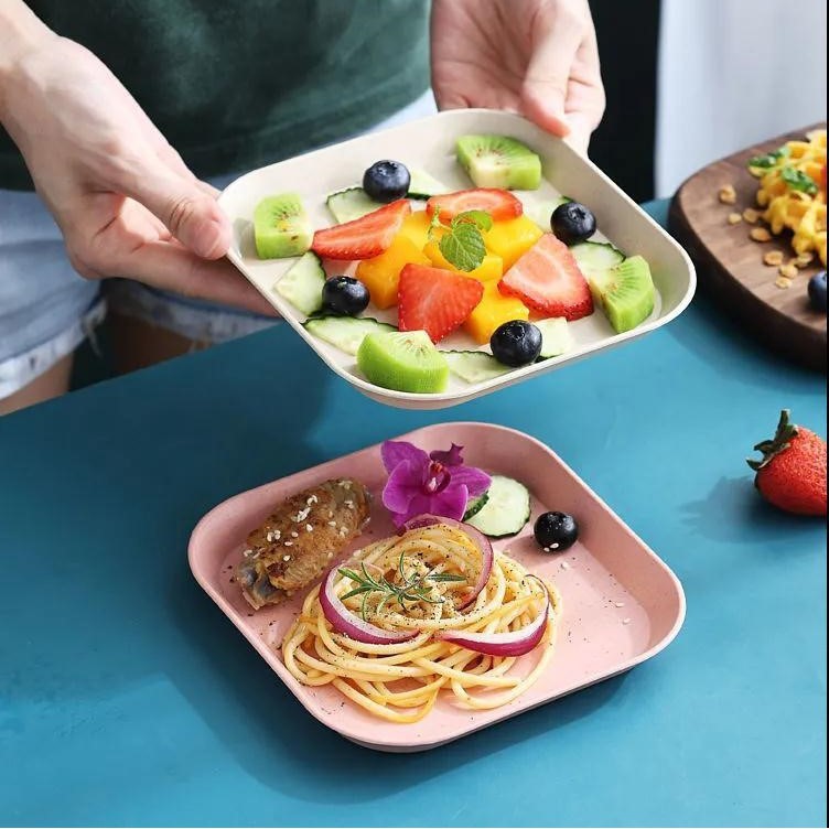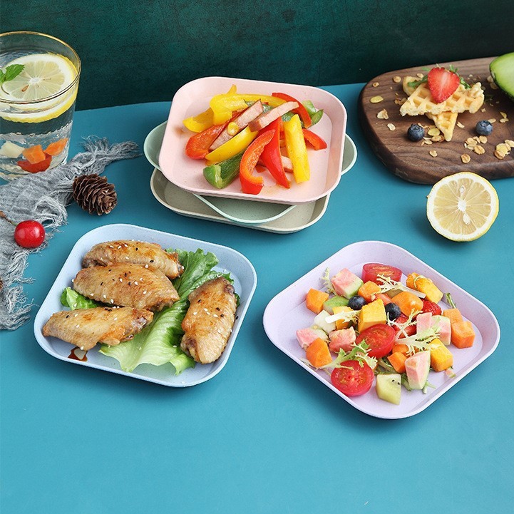 Combo 8 đĩa lúa mạch đựng thức ăn, đựng trái cây hình vuông bằng chất liệu nhựa lúa mạch vô cùng độc đáo và tiện dụng